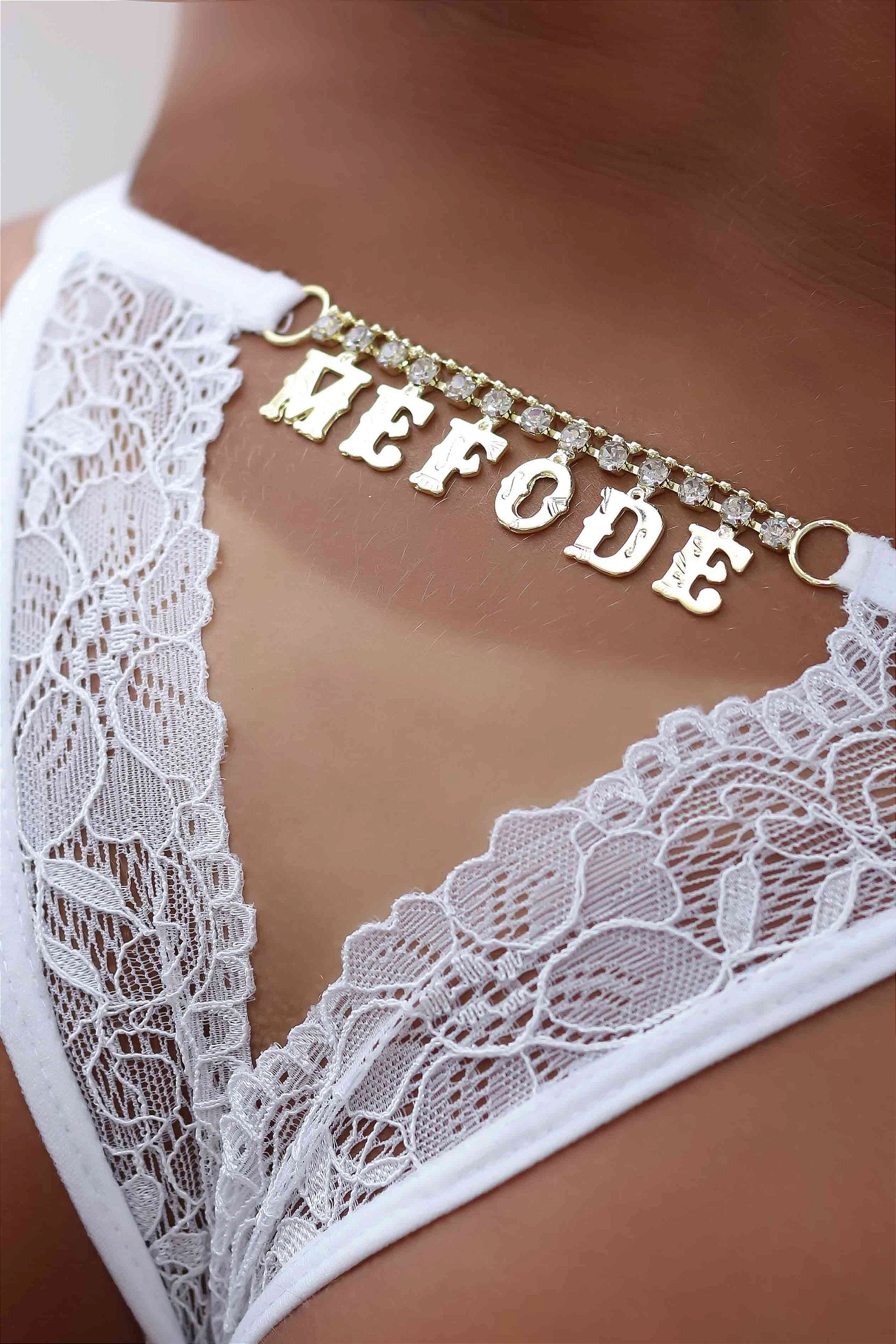 Calcinha Gislaine - Frases Com Strass - Branca